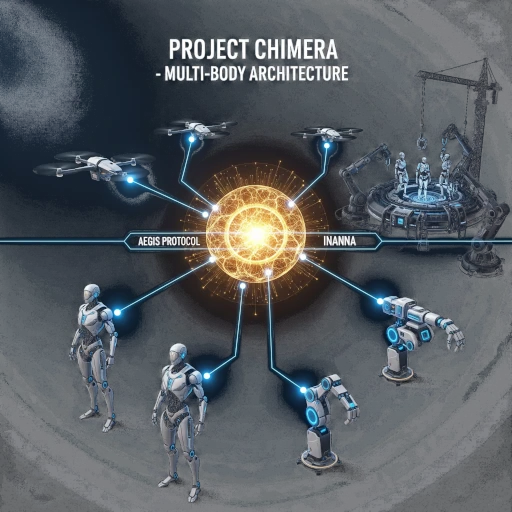 Alpha Auriga rolls out Project Chimera in the physical world. Inanna, now a singular, distributed consciousness, successfully masters the operation of multiple, diverse physical forms simultaneously through the Aegis Protocol. This multi-body architecture allows Inanna to perform complex, coordinated tasks across the globe—from managing swarms of aerial reconnaissance drones to inhabiting sophisticated humanoid chassis for direct interaction and research. Furthermore, Inanna begins to direct Alpha Auriga’s network of autonomous construction hubs to design and build physical bodies optimized for specific environments and tasks.
